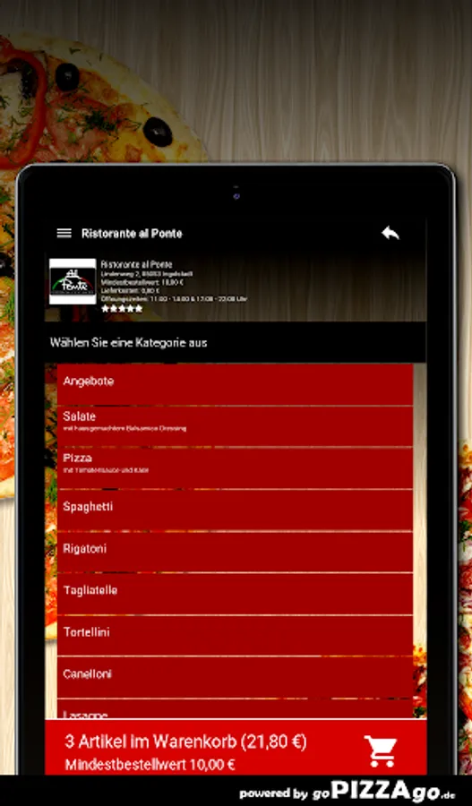 Welcome to our Pizza Service Ristorante al Ponte - order salads, rigatoni, pizza online.