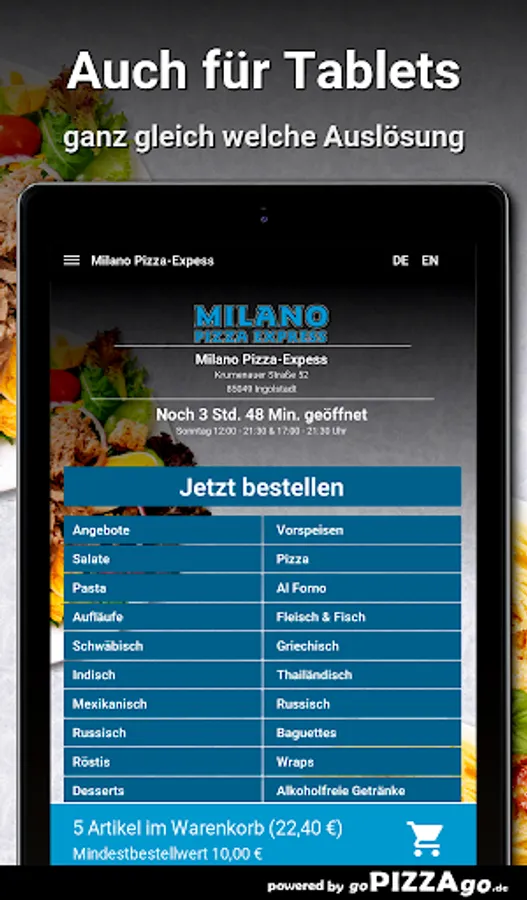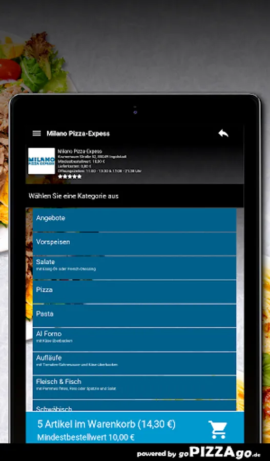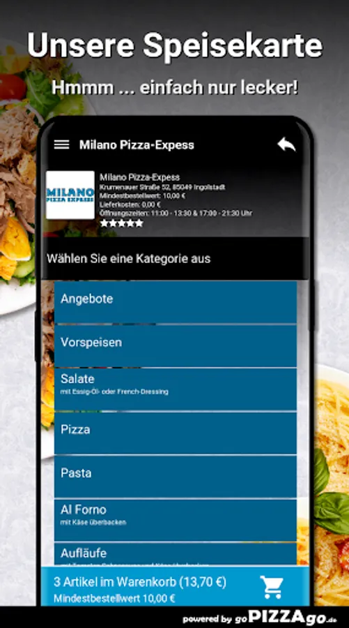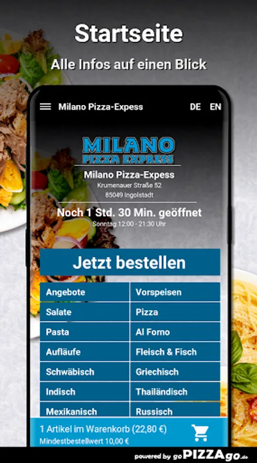 Welcome to Milano Pizza-Expess in Ingolstadt. Would you like to order Al Forno, Röstis, Indian, Mexican, Russian and have it delivered?