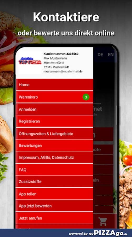 Schlemme Dich bei American Top Pizza durch die total köstliche Küche ItaliensLecker bekömmliche Festmahle aus der Küche Italiens bieten wir Dich natürlich auch. Pizza Top Meat mit Tomatensauce und Käse- mit Käserand ab + 2,00€ erhälst Du für 9,50-20,00 Euro schnell geliefert, wirklich gute Pizza Diavolo.