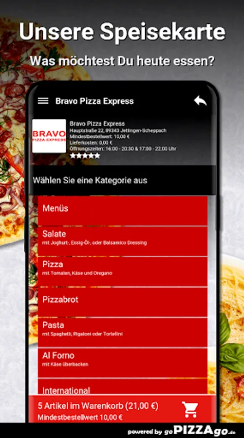 Bravo Pizza Express - have absolutely delicious dishes delivered to Jettingen-ScheppachYou are after pizza, Indian, finger food .. Freshly prepared to pick up or just have it delivered?