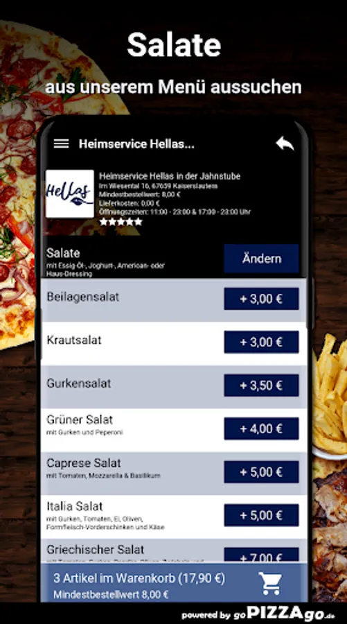 Heimservice Hellas in the Jahnstube in Kaiserslautern - we deliver your food! At Heimservice Hellas in the Jahnstube you can order pasta, pizza bread, pizza, gyros, grilled salads and have them delivered.