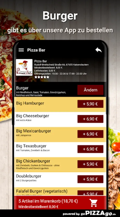 Pizza Bar - really delicious things to be delivered to Kaiserslautern Would you like to have something in German, French, Turkish, Italian, American?