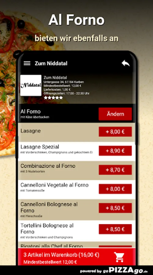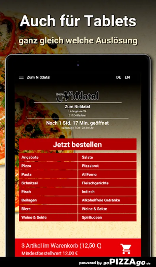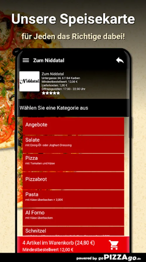 Zum Niddatal - your home service in Karben At Zum Niddatal you can order salads, meat dishes, pasta, pizza, schnitzel and Indian online.