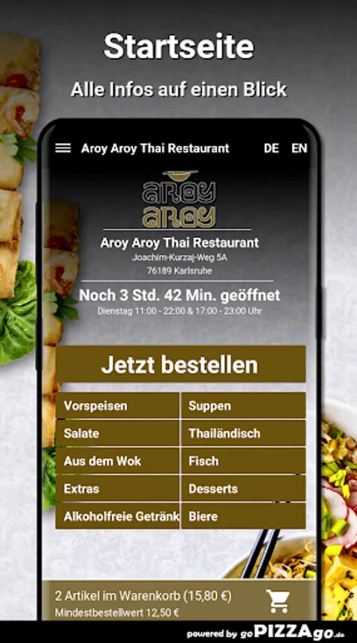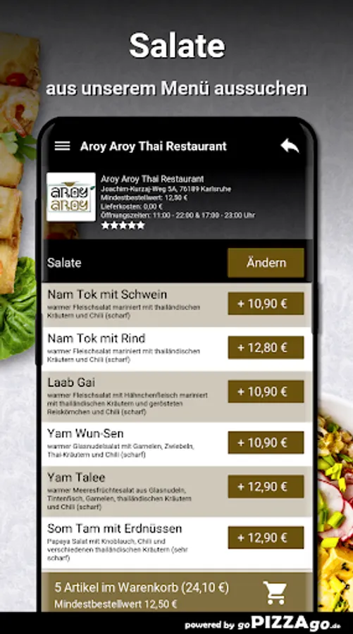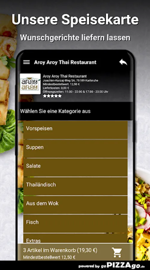 Welcome to Aroy Aroy Thai Restaurant in Karlsruhe. At Aroy Aroy Thai Restaurant there are starters, fish, salads, from the wok, Thai.
