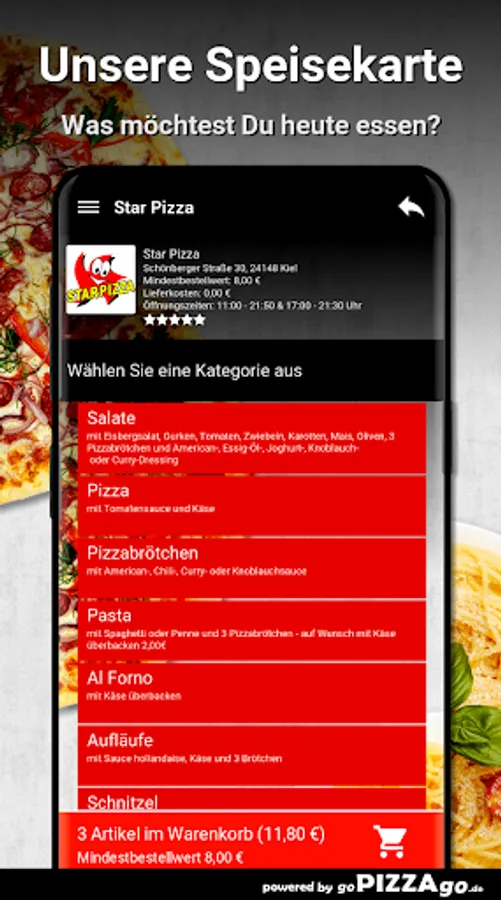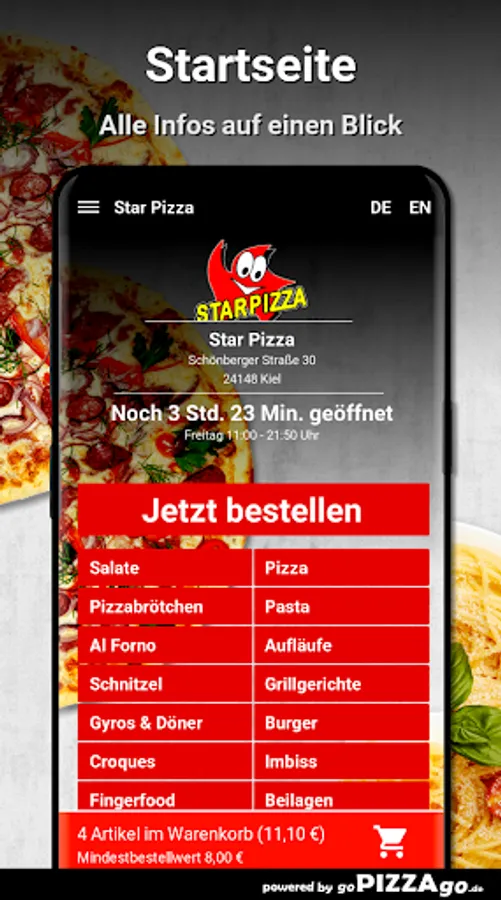 Star Pizza - Order food in Kiel Do you fancy pizza rolls, schnitzel, pizza, Al Forno, pasta to order online?