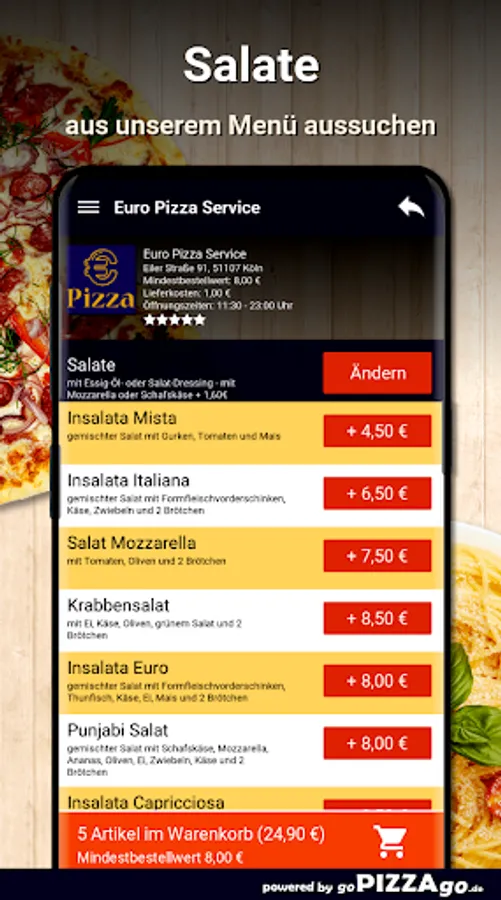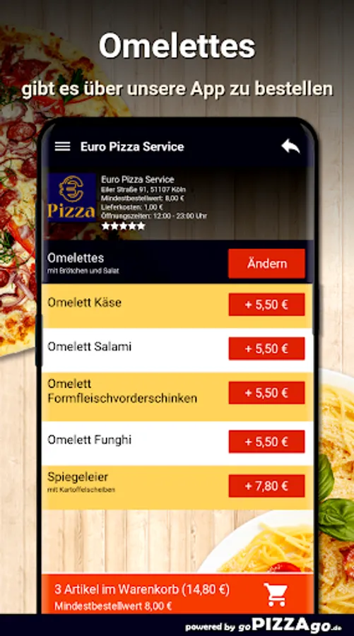 Order food online at Euro Pizza Service At Euro Pizza Service you can order Indian, snacks, pizza, meat dishes, salads, burgers, Al Forno, omelettes and have them delivered or picked up directly.