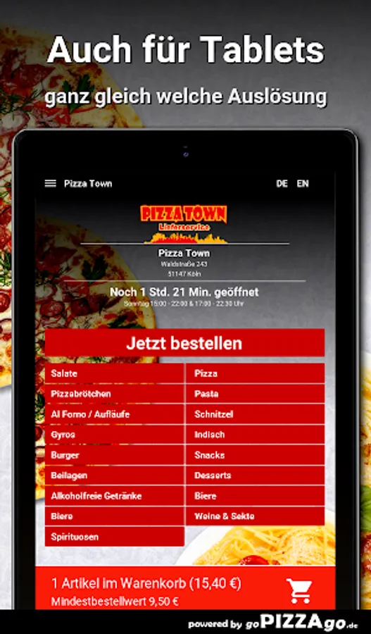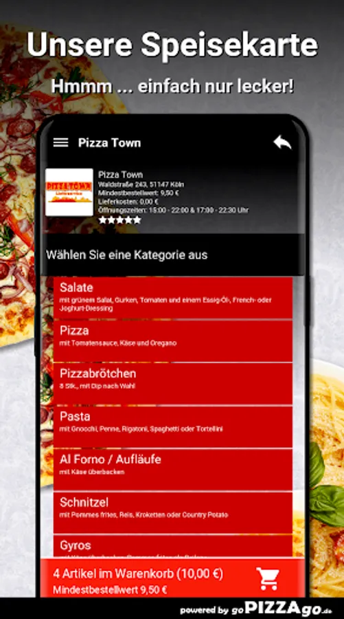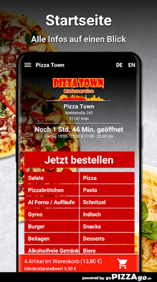 Pizza Town - really delicious things to be delivered to Cologne Are you hungry for pizza, snacks, burgers, pasta, pizza rolls, gyros, Indian?