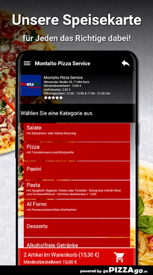 Montalto Pizza Service - Your delivery service in the basket With us you can of course have pasta, Al Forno, salads, pizza delivered or pick up!