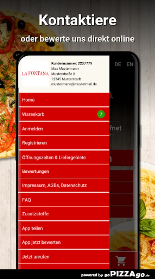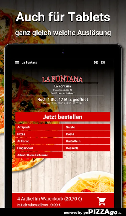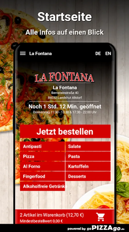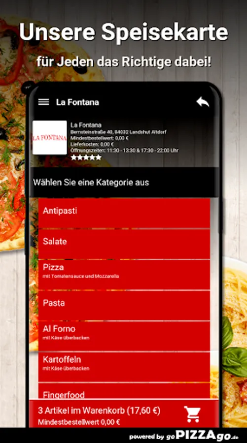 Welcome to La Fontana in Landshut Altdorf. Are you keen on antipasti, finger food, pasta, pizza, salads that you can conveniently order online and have them brought or picked up directly?