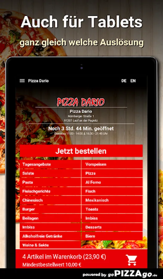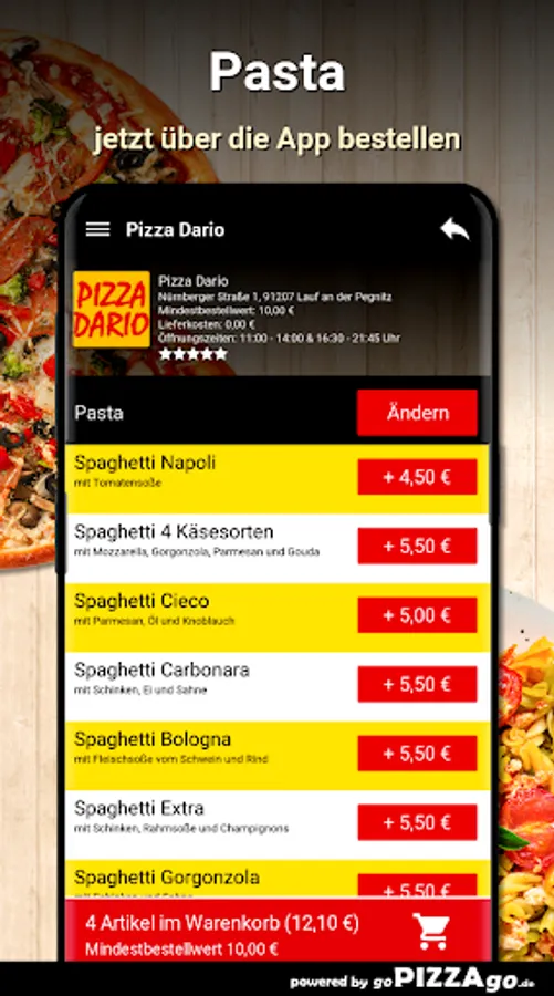 We are now inviting you to a culinary tour through Italian cuisine at Pizza Dario, whether pizza or hot pasta .. also try our specialties based on original Italian recipes! Delicious anchovy pizza (€ 3.50-23.00), pizza fries for € 3.50-24.00, pizza Dario is delivered to your home for € 3.50-23.00, and Canneloni al Forno is delivered You for 6.00-7.00 €, excellent pizza diavolo, pizza Antonio with ham, onions and salami to the delivery location of your choice, pizza special is delivered to you from 3.50-23 €, spaghetti gorgonzola. Tortellini Special and Spaghetti Extra.