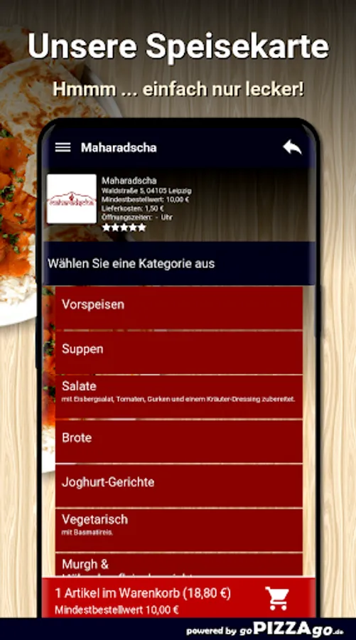 Welcome to our delivery service Maharajah You are really hungry for bread, yoghurt, fish, tandoori, lamb, salads, duck, rice to safely order and have it delivered here?