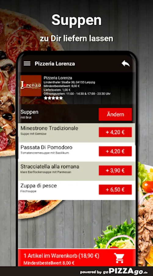 Pizzeria Lorenza - Ihr Lieferservice in LeipzigBei Pizzeria Lorenza kannst Du Pasta, Pizza, Schnitzel, Indisch, Aufläufe liefern lassen oder abholen.