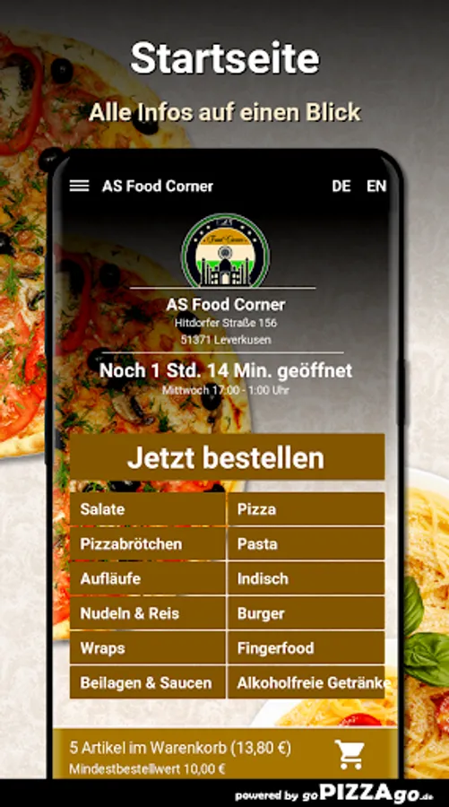 AS Food Corner in Leverkusen - we deliver your food! At AS Food Corner you can order pizza rolls, wraps, Indian, finger food, pasta & rice, burgers, casseroles online.
