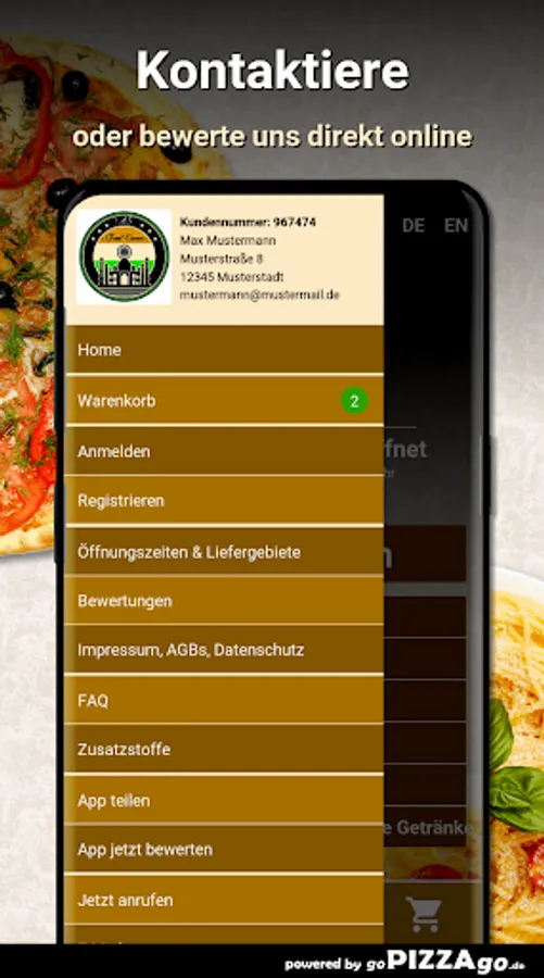 You can order tempting meals from us here. Our menu offers more than 124 delicious dishes (BBQ sauce, Tonno salad, Panini Sucuk, Crispy Chicken Burger XXL, Panini Spinaci, Mista salad or Pizza Taj Mahal for 9.50 euros). Also order soft drinks: Sprite, Mezzo Mix, still water, Coca-Cola, Fanta.The top sellersWhen we deliver your food