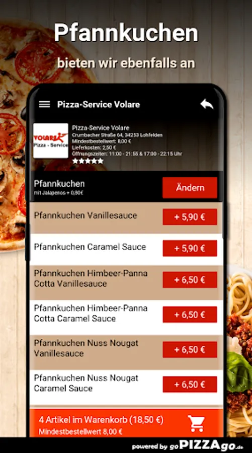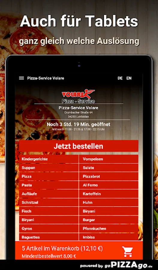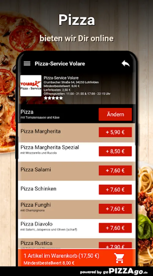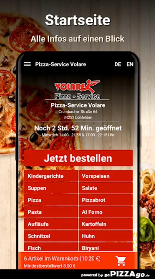 Order food online at Pizza-Service Volare Lohfelden You can order biryani, pizza, casseroles, fish, baguettes and schnitzel from us and have them delivered to your home.