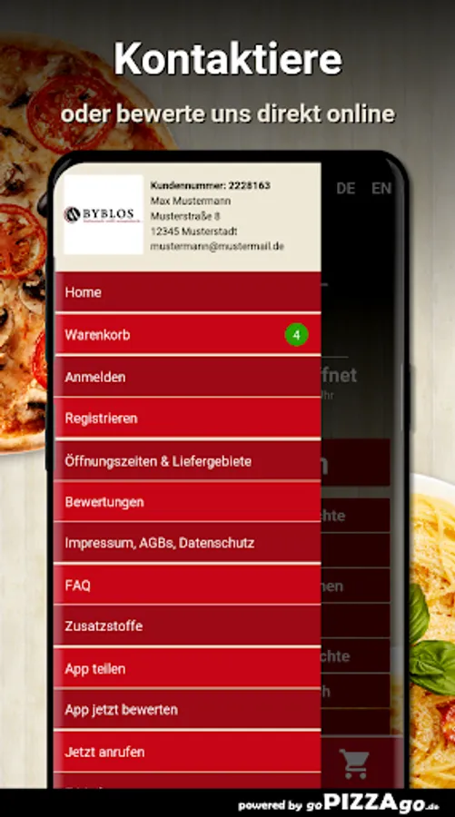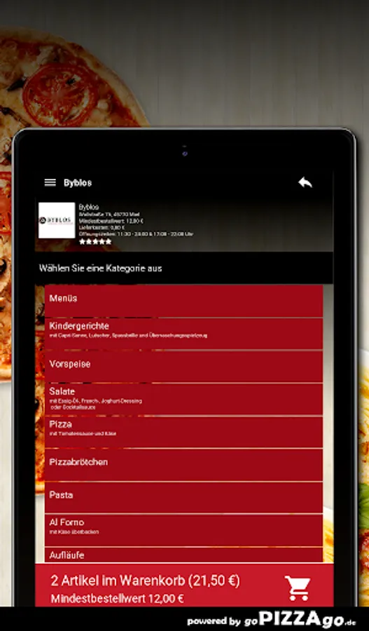 You can safely order delicious and fresh dishes from our Byblos pizza service and have them brought to the office or home. A selection of 295 dishes awaits you. What are our top sellers? When we deliver your food