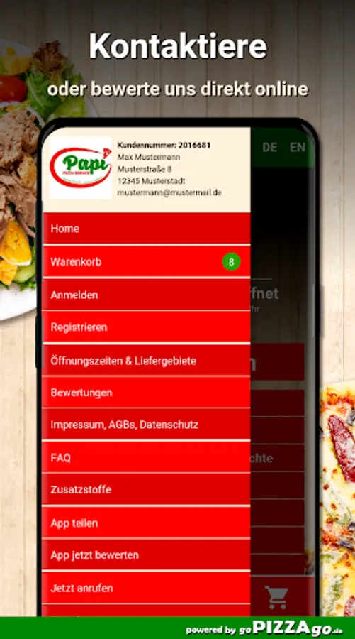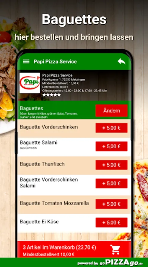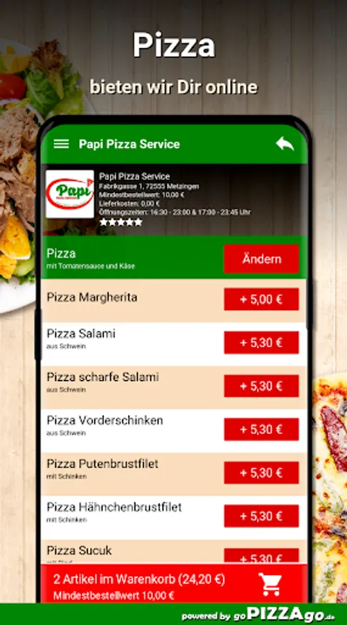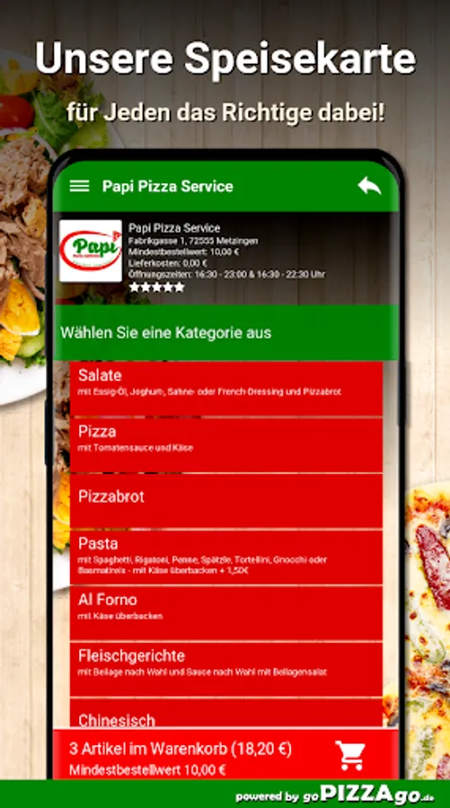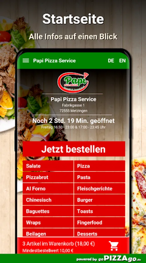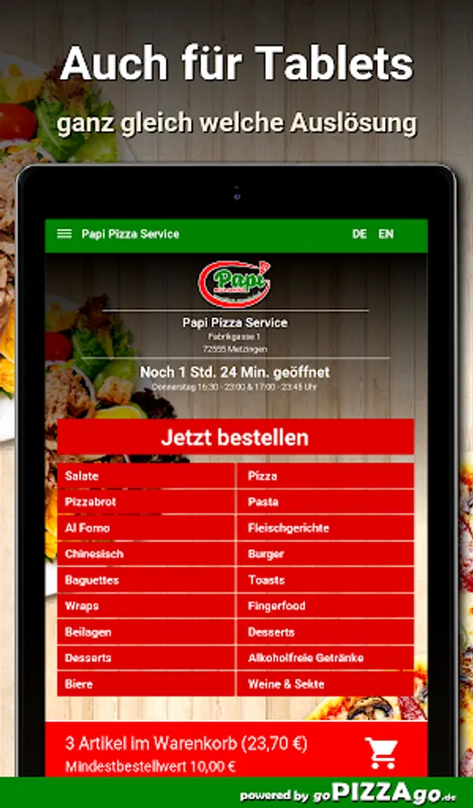 Order original Italian feasts from Papi Pizza Service Metzingen and have them delivered