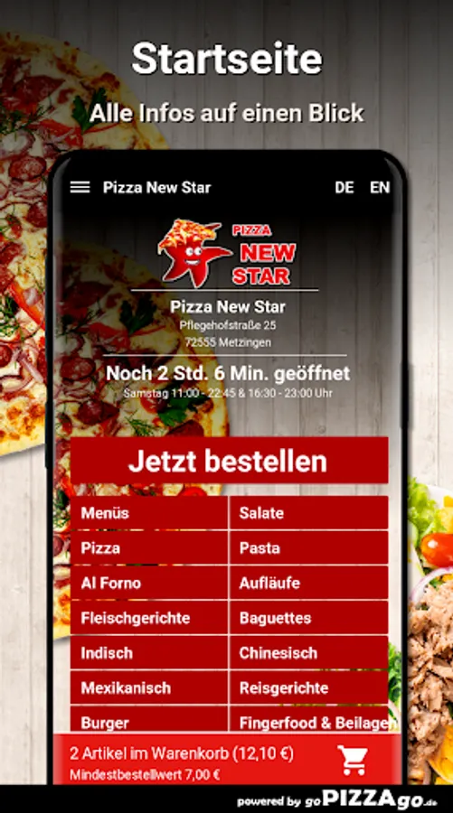 At Pizza New Star you can order Mexican, casseroles, Indian, Al Forno, burgers and have them delivered or pick them up directly.