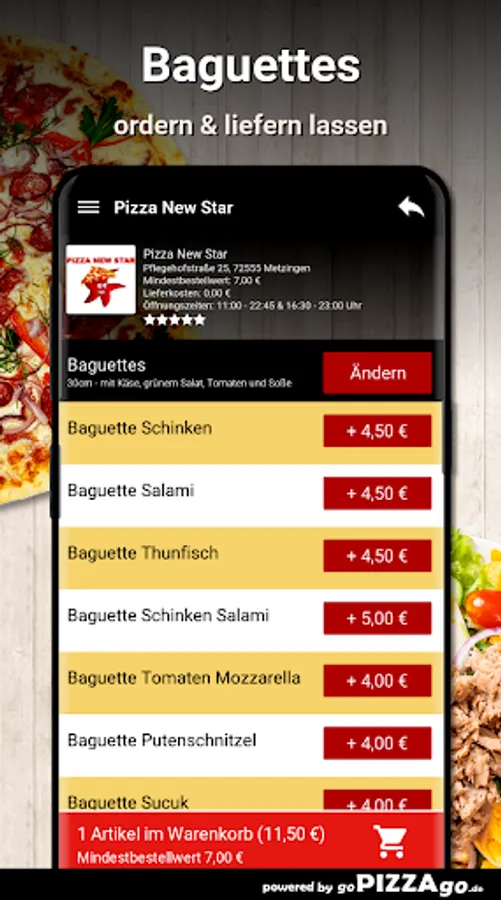 Order Indian baguettes online at Pizza New Star