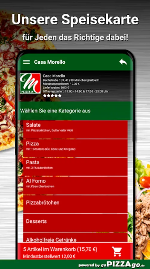 Casa Morello - Order food in Mönchengladbach Do you have a huge hunger for salads, pizza rolls, pizza, pasta to order online?