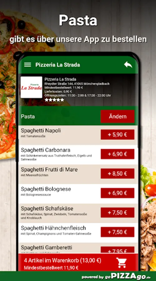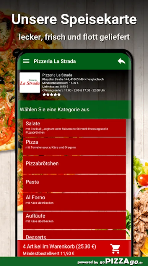 Pizzeria La Strada - Order food in MönchengladbachPizza Service Pizzeria La Strada in 41065 Mönchengladbach .. Have salads, pizza & co delivered.