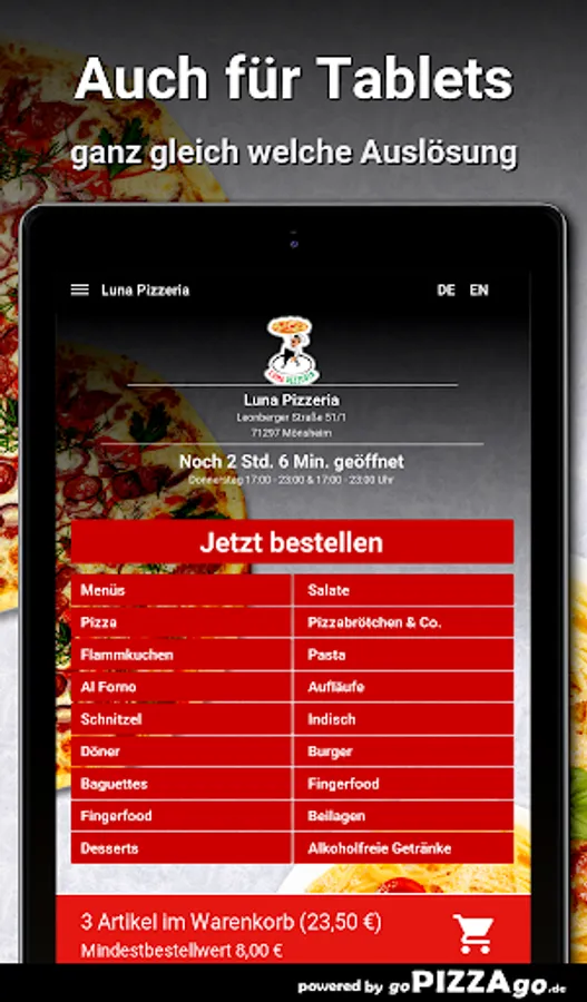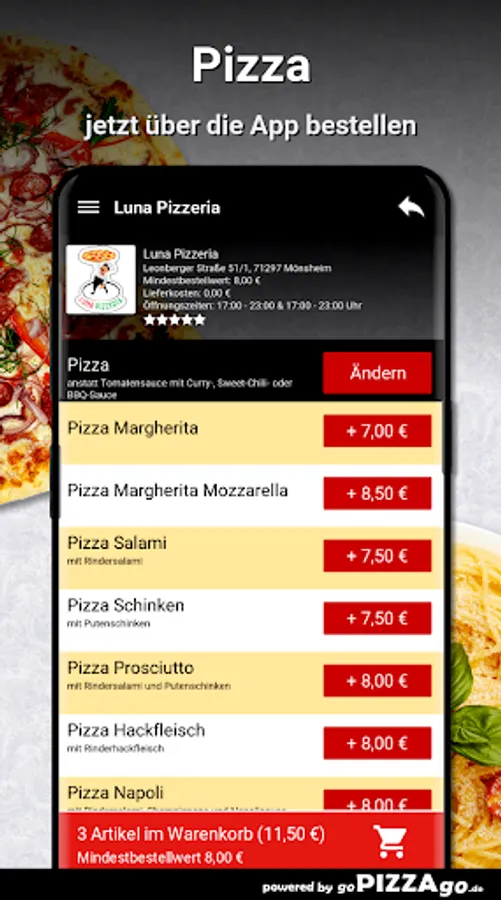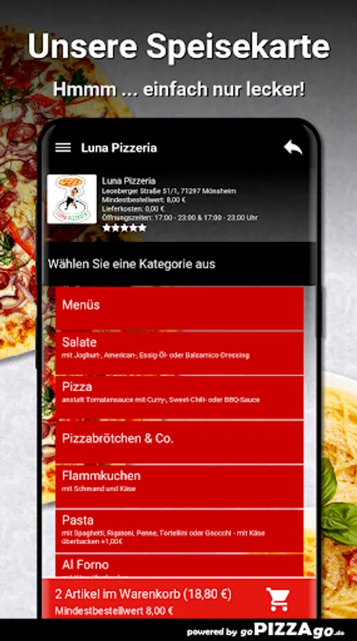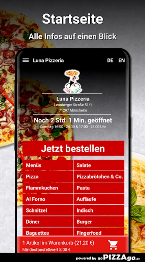 Luna Pizzeria - your delivery service in MönsheimAt Luna Pizzeria you can have finger food, burgers, casseroles, Indian delivered or pick them up!