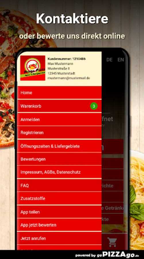 You can easily order meals and fresh dishes from our pizza service here. You will find 102 meals in our menu (big burger, mixed salad, pizza calzone, farmer's salad, pasta arrabiata, 8 spring rolls or pizza gorgonzola for € 6.50). Of course, we also deliver non-alcoholic drinks to you. We have orange juice 1.0l, Fanta 1.0l, apple juice 1.0l, Mezzo Mix 1.0l on offer. These are our top sellers When can I order from Prego Pizza?