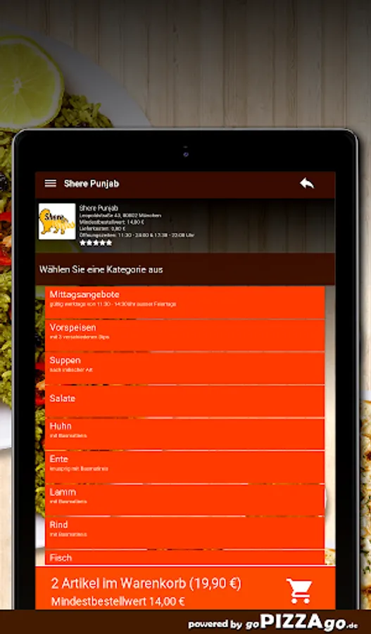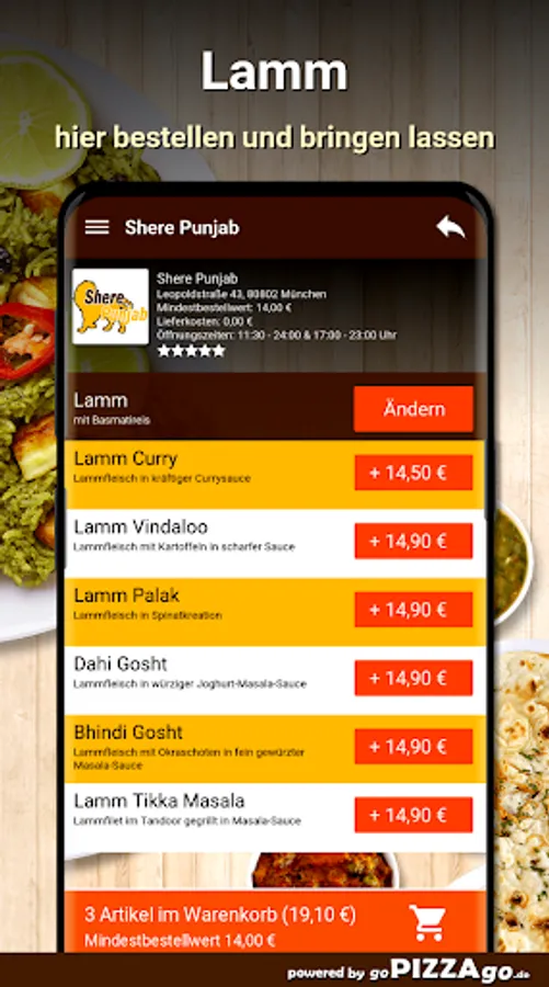 If you want to order delicious, varied Indian dishes conveniently online at Shere Punjab in Munich, here in Munich you can also get to know the well-known Indian cuisine with its numerous aromatic, varied dishes. Mango duck in a fine mango sauce straight to your home, Makhani Dal (€ 11.50), tasty Garlic Naan with garlic can be delivered to your front door for € 3.10, excellent lamb Vindaloo.