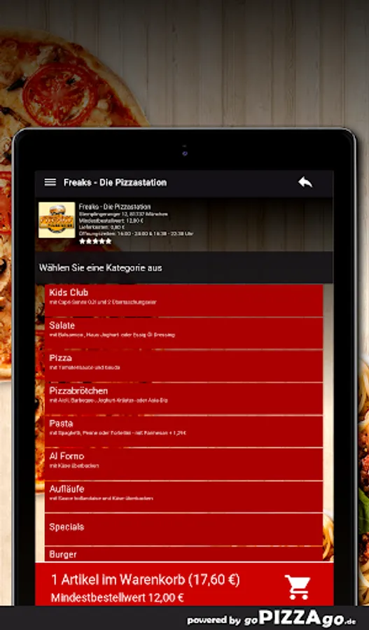 You can order delicious and fresh dishes quickly and conveniently online on our website in our pizza service. Choose from 121 feasts (Pizza Regina, Fitch ciabatta rolls, chilli cheese nuggets or Pizza Arizona for 19.99 euros). For our younger guests we have Kids Pizza Salami for 5.49 euros, Kids Pizza Margherita for 4.49 euros, Kids Pizza Hawaii for 6.49 euros. We also have a wide range of drinks to choose from: Coca-Cola, Coca-Cola light, Red Bull, Fanta.When can I order from Freaks - Die Pizzentation?