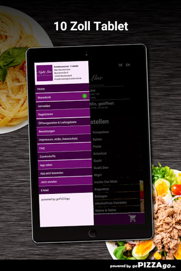 You can order and pay for freshly prepared food online in our pizza service. You will find 266 delicious dishes in our menu online (Pizza Salvatore, 2 Agedasi Tofu, Ebi Tempura, 2 Nigiri Maguro, Pizza Monte Cristo, potato salad, glass noodle soup or scampi baguette for 7.50 euros) to order?