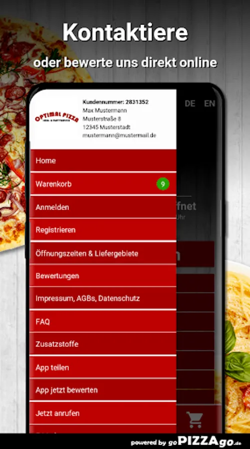 Feast on the original Italian cuisine at Optimal Pizza.We also offer you fresh, varied dishes from Italian cuisine. Pizza Bacon Barbecue with bacon, onions and barbecue sauce is available for € 7.90-22.90 to order online, Pasta Napoli is available for € 5.90, Pizza alla Diavola has Optimal Pizza for only 7.90-22, 90 € to pick up or deliver. Pizza Margherita to order online. You can get Pasta Quattro Formaggi for € 7.90. Lasagne Bolognese is available for € 7.90 and Prosciutto di Parma pizza is available for € 8.90-25.90.