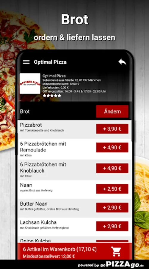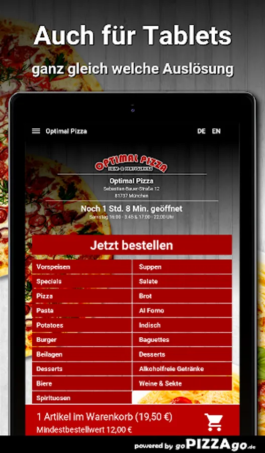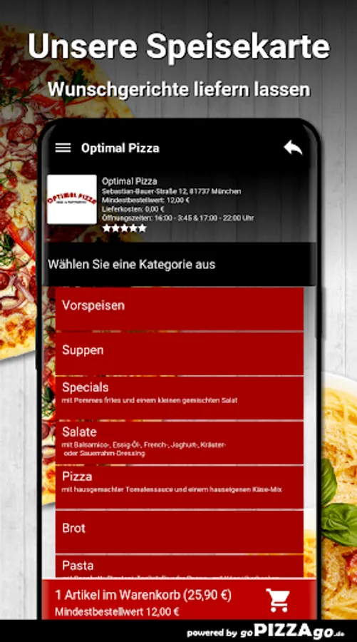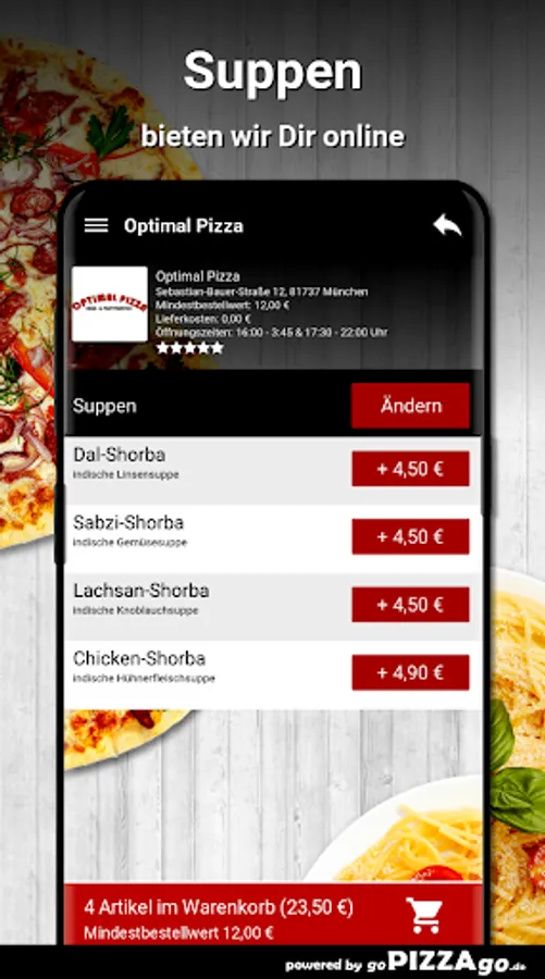 Optimal pizza in Munich - we deliver your food! Do you love German, French, Indian, Chinese?
