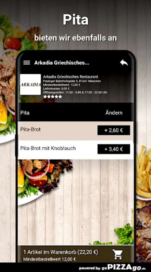 Welcome to Arkadia Greek Restaurant in Munich! Do you love fish, meat dishes, Al Forno, pita to order and have it delivered or to pick it up?