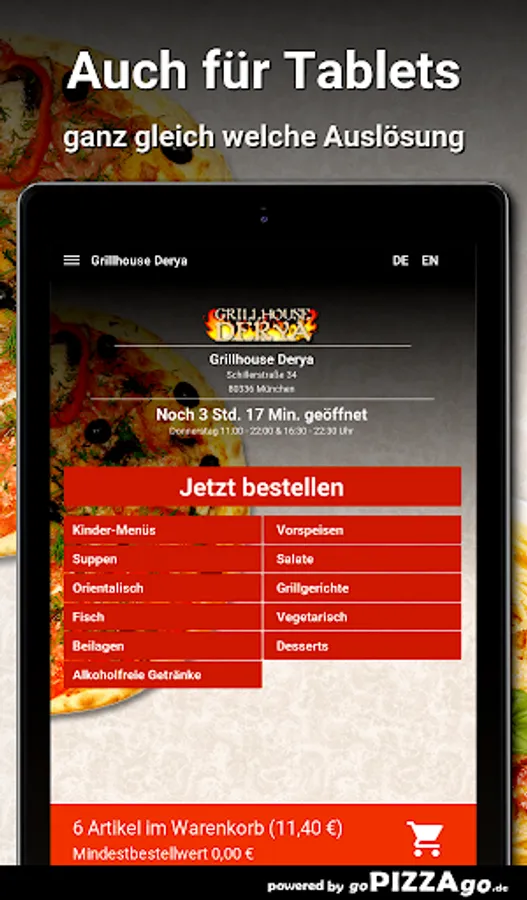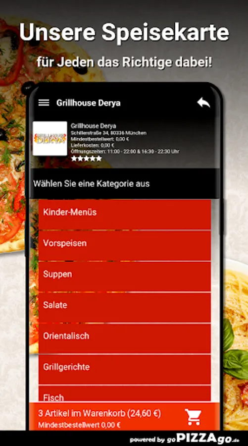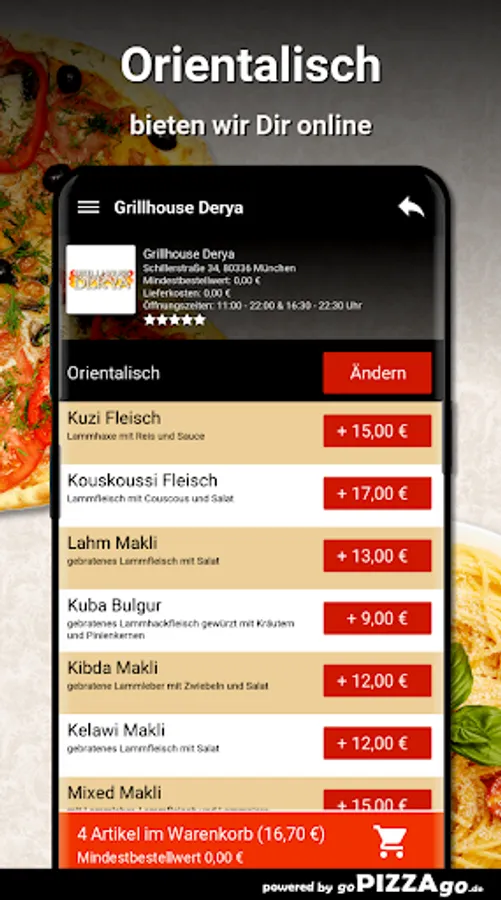 Grillhouse Derya - order delicious food & drinks online At Grillhouse Derya you can order soups, fish, salads, starters, grilled dishes, vegetarian and oriental dishes online and have them delivered.