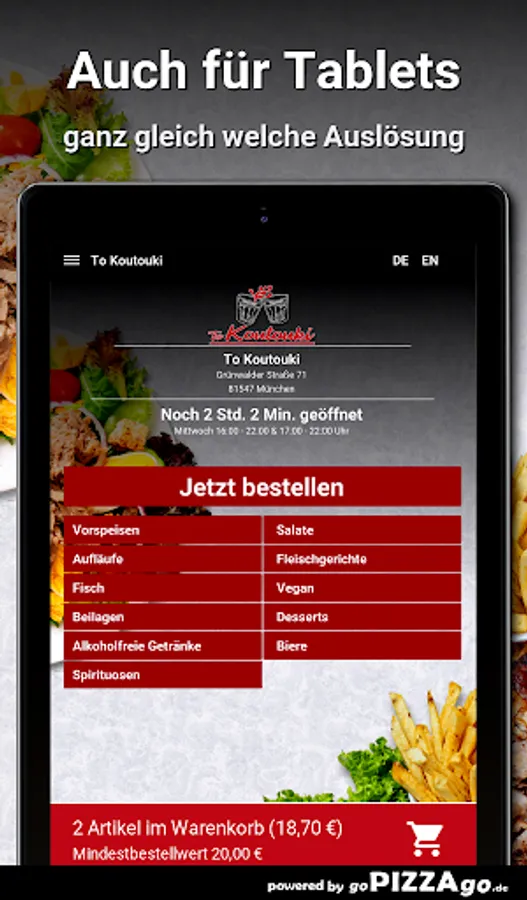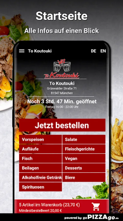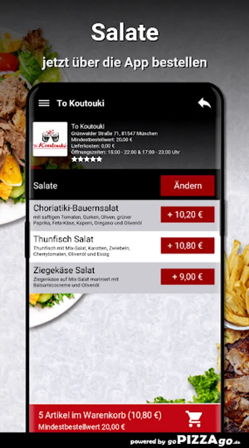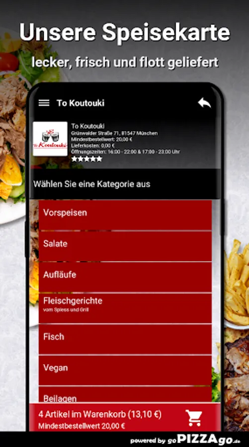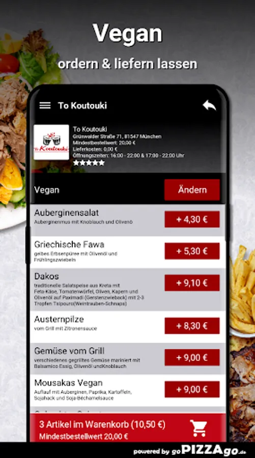 Order food online at To Koutouki Munich Do you fancy meat dishes, salads and starters in Munich that you can easily order here and have them delivered?
