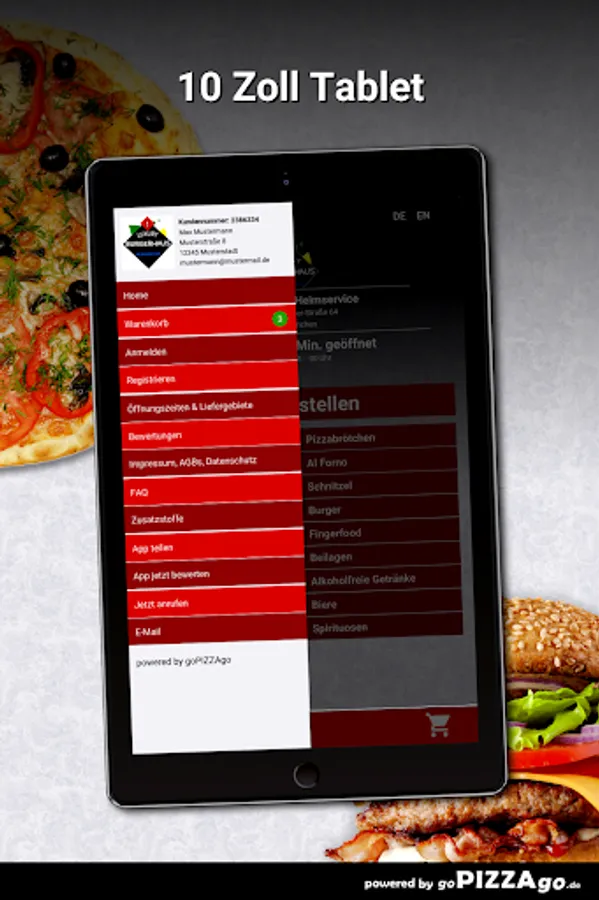 You can order many delicious dishes in our online shop from our Luxury Burger Heimservices easy online delivery service. We have 125 delicious dishes such as filled chicken pizza rolls, pasta tuna, French fries, baguette mozzarella, 2 corn on the cob and Insalata di Mare for € 6.99. You can also order soft drinks such as apple juice, Fanta, Coca-Cola light, Red Bull, apple spritzer. We are very happy to order these. Our delivery times are