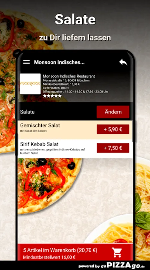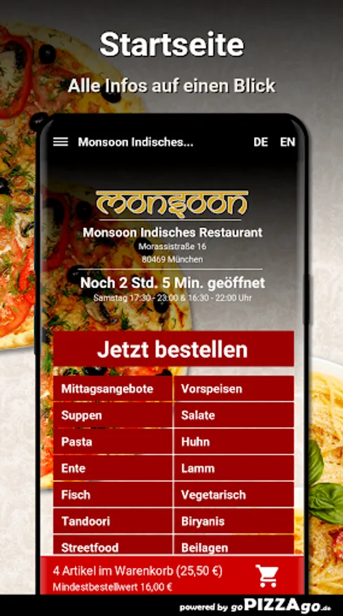 Monsoon Indian Restaurant - your delivery service in MunichAt Monsoon Indian Restaurant you can order chicken, tandoori, pasta, duck, salads, street food, appetizers, vegetarian... totally freshly prepared.