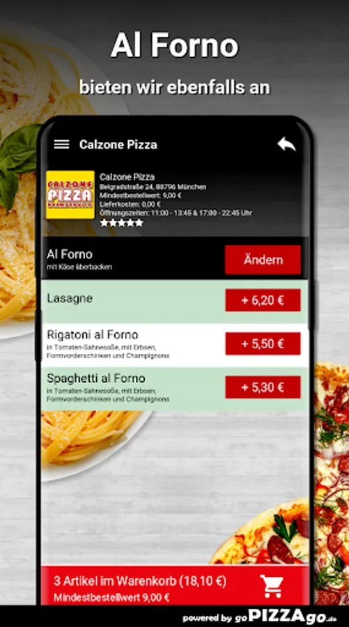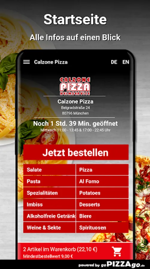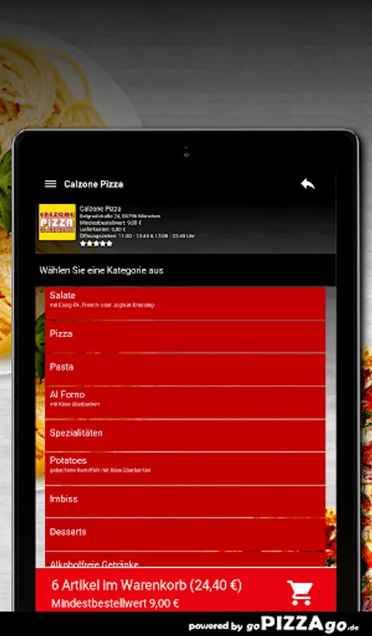 Antipasti, pasta and Al Forno: With Calzone Pizza, the Italian cuisine offers many delicacies47 absolutely delicious delicacies from Italy are also available here from Calzone Pizza. Pizza Allem can be delivered to your place of residence for € 7.10-12.30. Calamari fritti (€ 7.10), pizza margherita. You can get tasty aromatic pizza anchovies, Pizza America for 6.60 to 11.30 €. You can get really good pizza shrimps at Calzone Pizza for € 6.60 to € 11.20, the delivery service brings you lasagna at a price of € 6.20 to the delivery location of your choice, Broccoli pizza is delivered to you for € 6.10-10, 20 Euros. You can get tasty aromatic spaghetti al forno at Calzone Pizza for € 5.30, Spaghetti Quattro Formaggi for € 6.70.