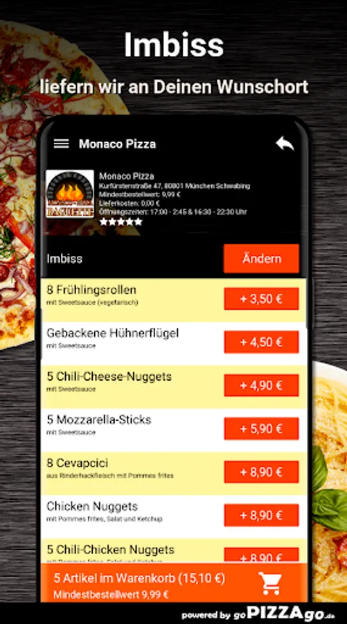Monaco Pizza - Order food in Munich Schwabing Do you like delicious pizza rolls, burgers, baguettes, snacks to order and have them brought to your own 4 walls?