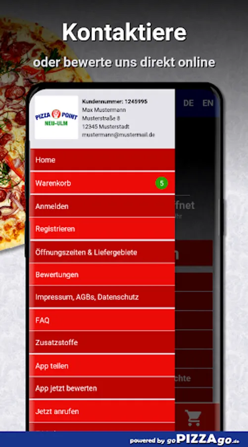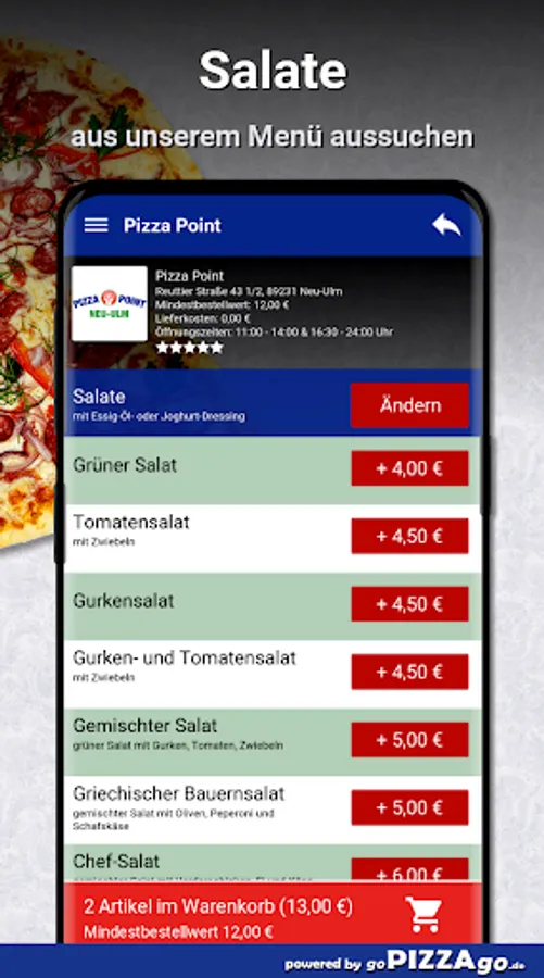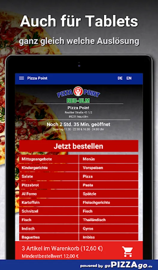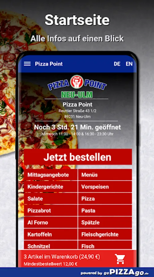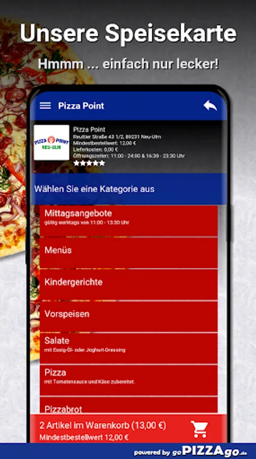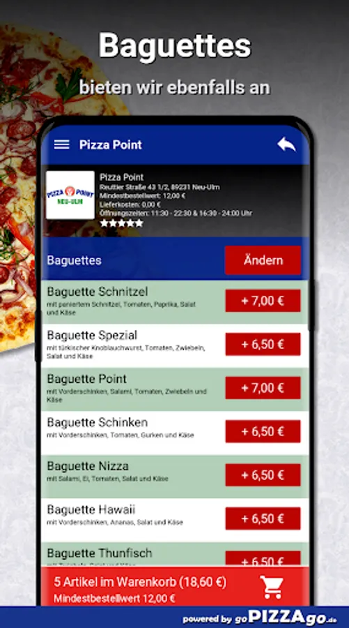 Pizza Point - your delivery service in Neu-Ulm You can order pizza, baguettes, meat dishes, potatoes, fish and schnitzel here and have them delivered.