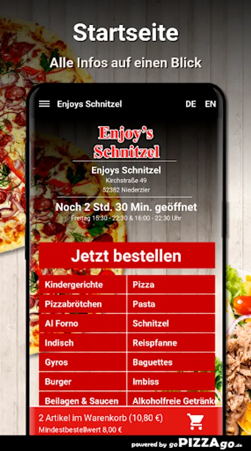 Order food online at Enjoys Schnitzel You can order gyros, Al Forno, rice pan, baguettes, pizza rolls, pasta, pizza, Indian at Enjoys Schnitzel.