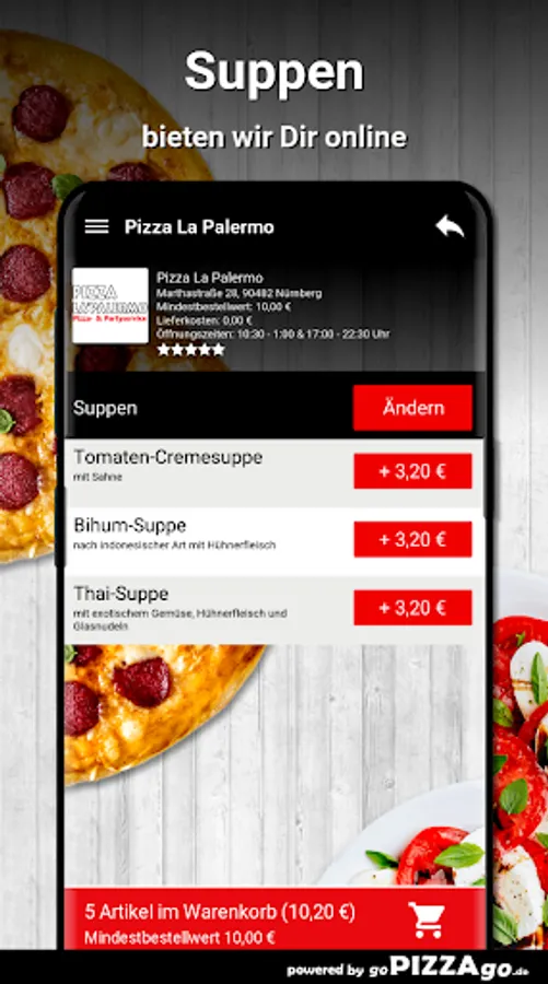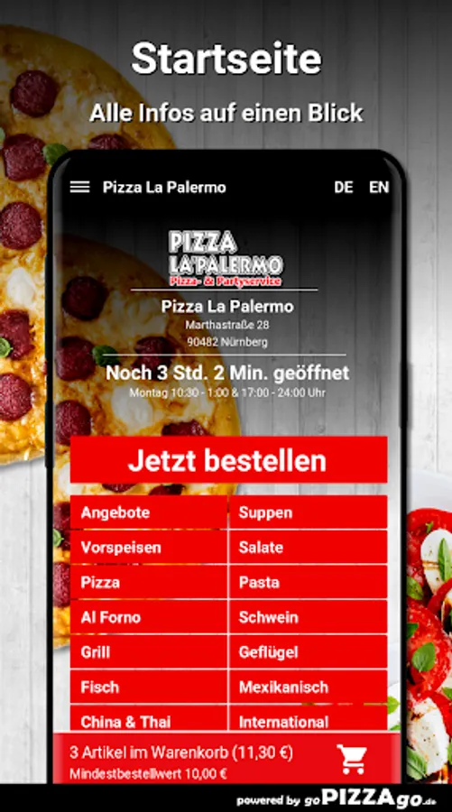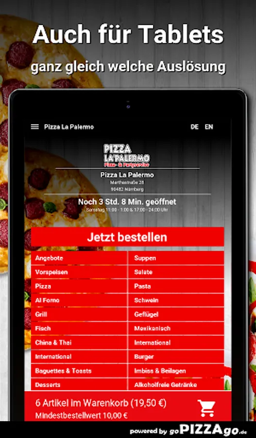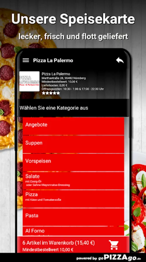 Pizza La Palermo - your delivery service in NurembergYou can of course order salads, international, poultry, soups safely and have them delivered to the desired location!