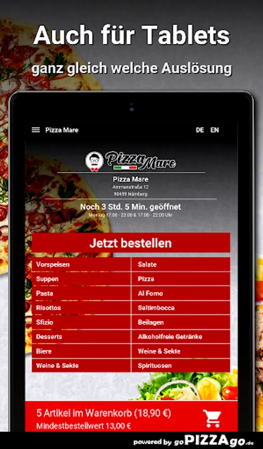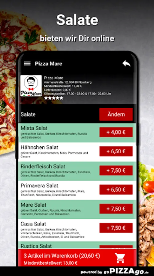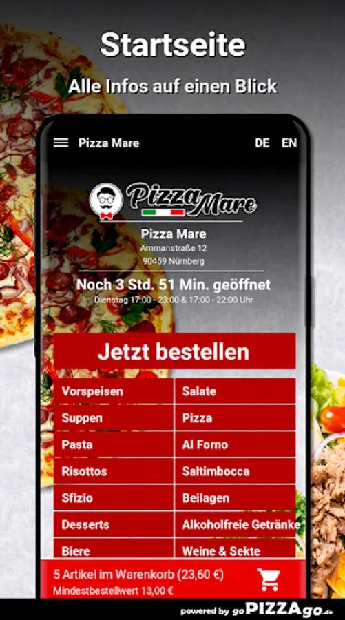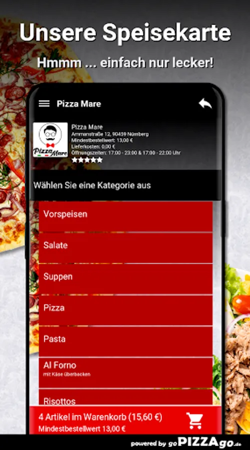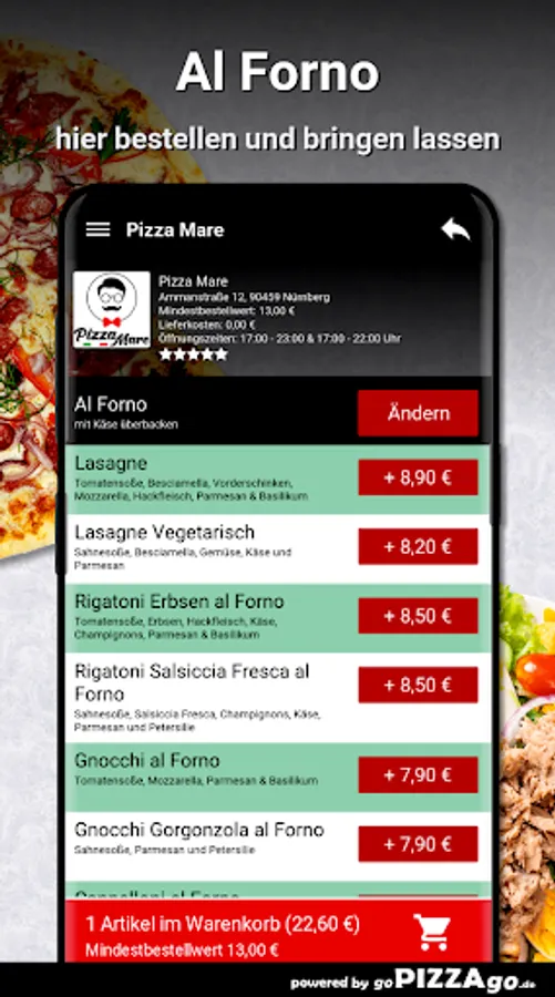 Pizza Mare - your delivery service in Nuremberg Do you have a craving for soups, risottos, pizza, pasta, salads, Saltimbocca, Al Forno, Sfizio to order and have it brought into your own 4 walls?