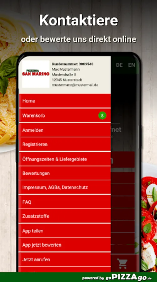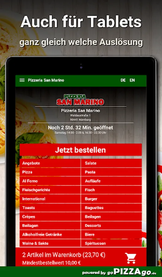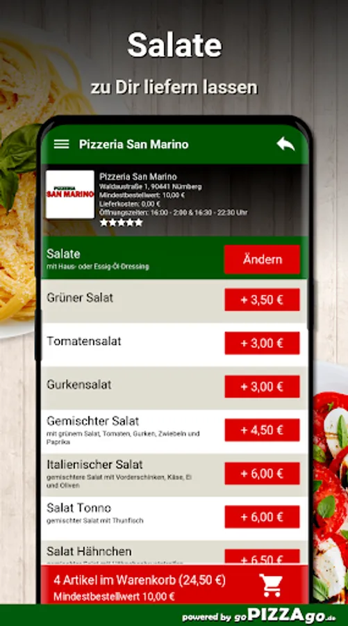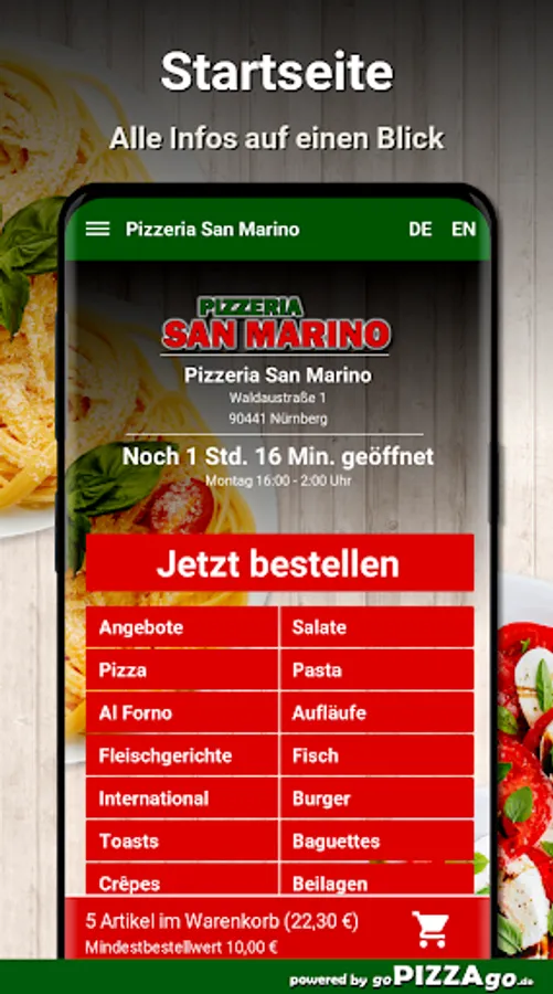 Pizzeria San Marino - your delivery service in Nuremberg Do you love baguettes, pasta, toasts, salads to be safely ordered and delivered here?