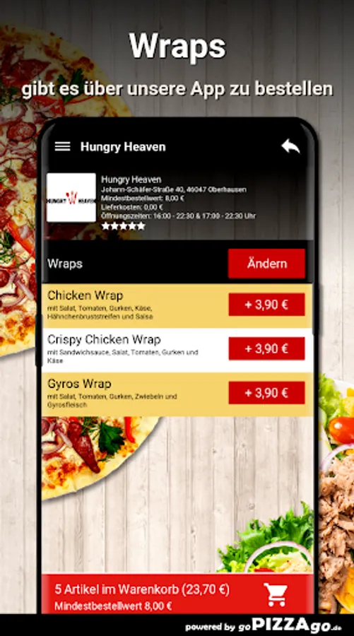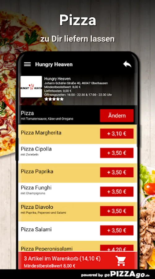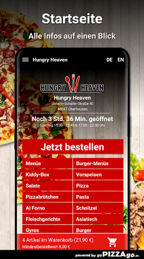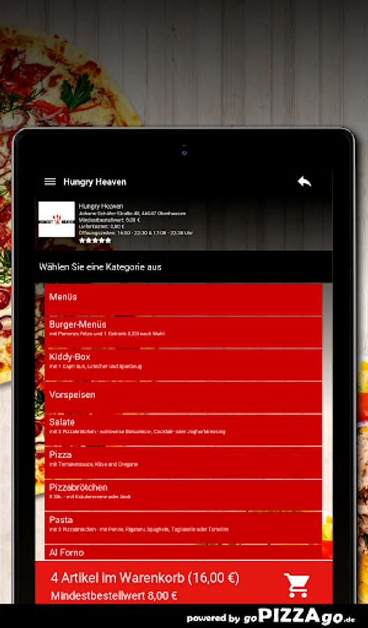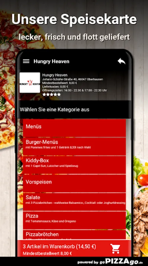 Welcome to Hungry Heaven in Oberhausen, where you can order starters, pizza, schnitzel, gyros, snacks and meat dishes online.