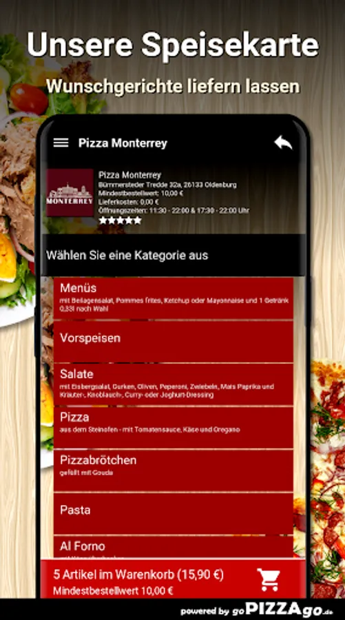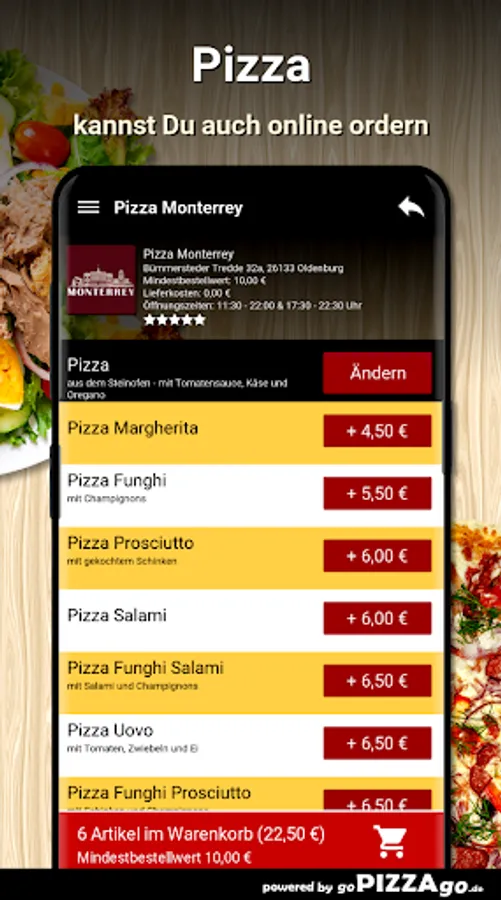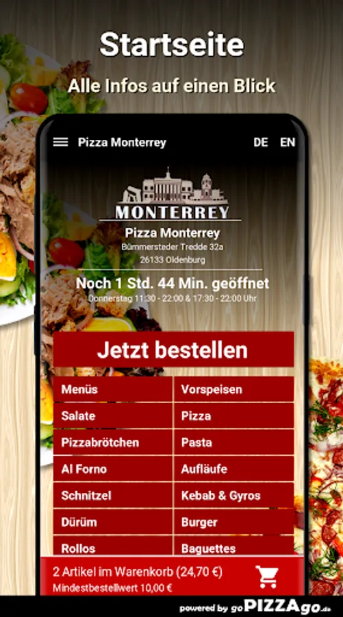 Pizza Monterrey - Order food in OldenburgWith us you can order snacks, pasta, schnitzel, casseroles, pizza ... totally freshly prepared.