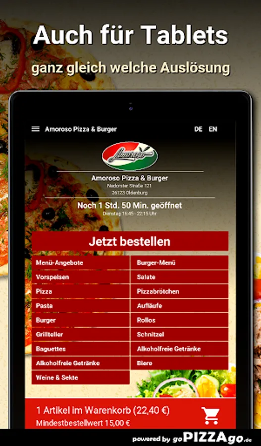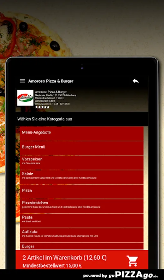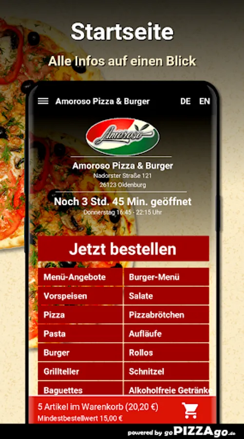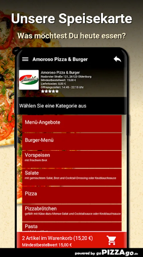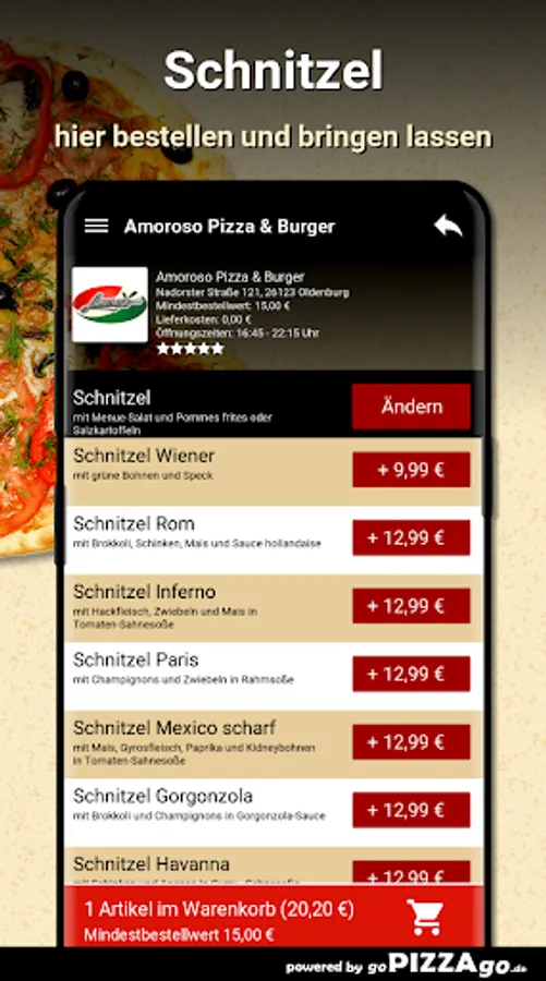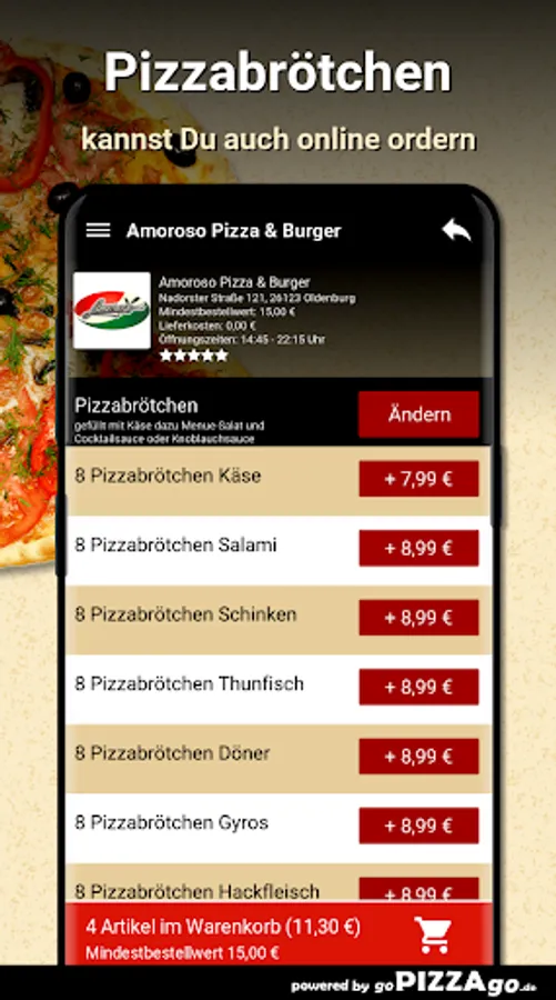 Welcome to Amoroso Pizza & Burger in Oldenburg. You are hungry for pizza, pizza rolls, salads, schnitzel, roller blinds, grill plates to order online here and have it delivered?