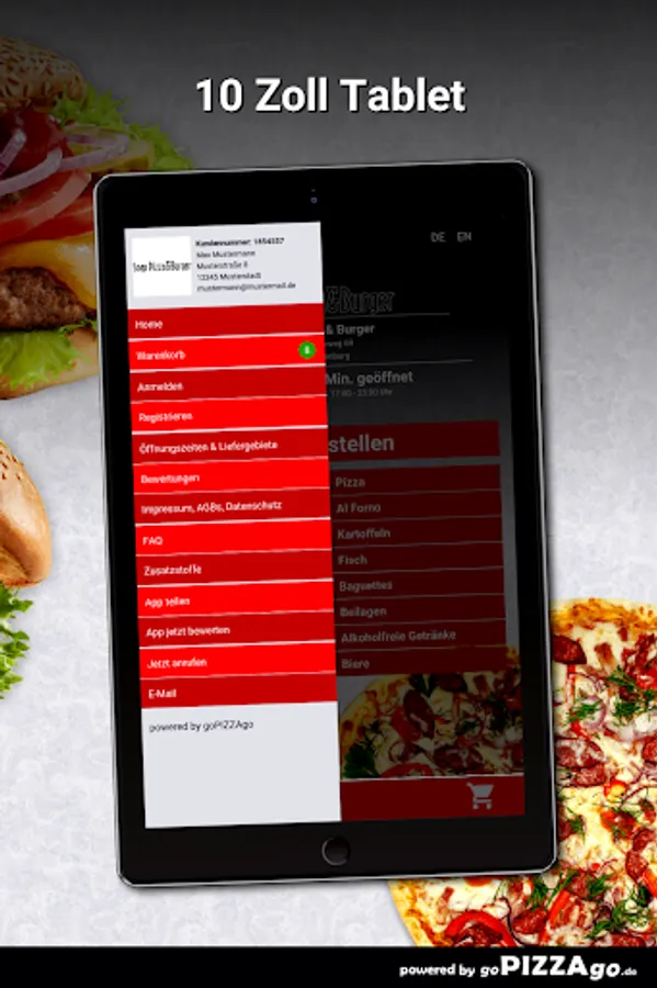 You can easily order hearty delicacies online with our pizza service. We offer you 119 freshly prepared dishes: Pizza Diavolo, Baguette Shrimp, 10 Chicken Wings, Pizza Pomodoro, Baguette Monaco for €8.90. Also order drinks, we have Fanta, Coca-Cola, Sprite, apple juice. What do customers find most delicious? You can order food at these times