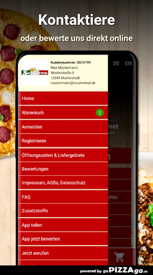 You can safely order really tasty meals from us & have them delivered to your home or perhaps your office. Choose from 168 delicious dishes, an excerpt: Spaghetti alla Arrabiata, 6 Gambas, Crab Salad, Hawaii Baguette, Pizza Bolognese for 9.00 euros. The seven most delicious dishes Our delivery times are