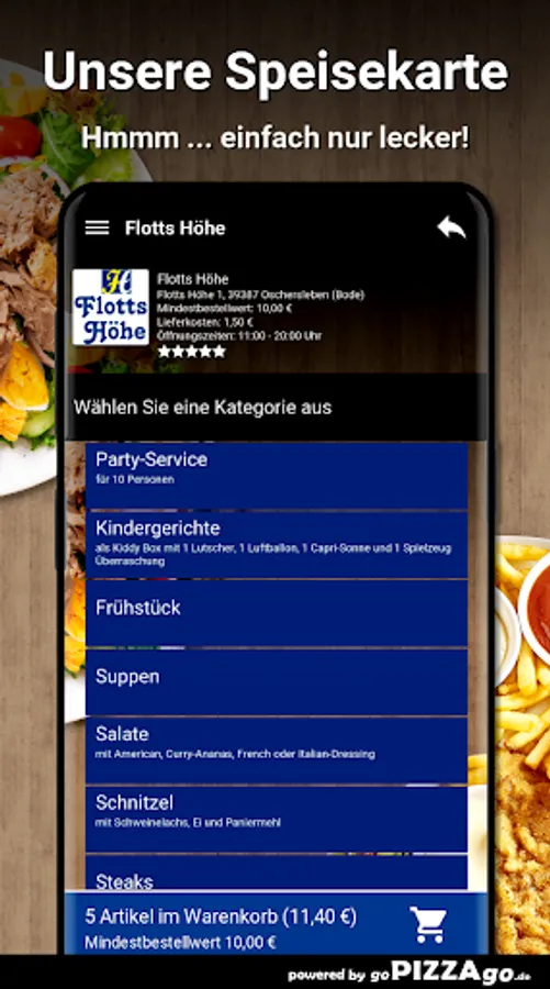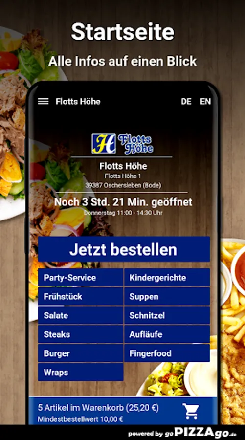 Flotts Höhe in Oschersleben (Bode) - we deliver your food! Are you hungry for burgers, schnitzel, finger food, soups, salads, casseroles in the office or home to be delivered or picked up?